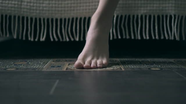 7. Sit on the edge of your bed. Point and flex the feet. Spread and splay the toes. Fold the toes in and out (toward the soles of the feet).